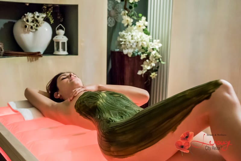L’impacco di alghe con il sale è un trattamento estetico molto efficace. Le alghe contengono molte sostanze minerali e sono perciò indispensabili per il rimodellamento del corpo, per perdere i centimetri di troppo in determinate zone e per eliminare la cellulite. Ricco di iodio permette il drenaggio dei liquidi, cosi da eliminare velocemente le tossine presenti nel organismo. Stimola il metabolismo, riduce l’adipe e tonifica fortemente i tessuti, purifica la pelle di tutto il corpo. Dopo il trattamento la pelle risulta vellutata, più tonica e soda. Si consiglia abbinato ad un massaggio specifico.